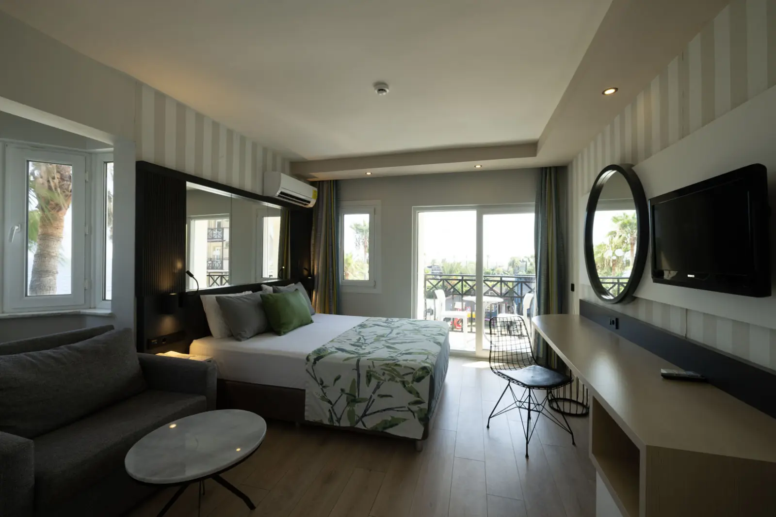 Geniş odalarımız, kısmi deniz veya kara manzaralı olarak ayrılmaktadır. Ara kapılı geniş bir odadır. Odada 1 adet çift kişilik yatak, 2 adet açılabilir ranza ve 1 adet açılabilir koltuk bulunmaktadır. 2 yetişkin, 2 çocuk ve 1 bebek konaklamasına müsaittir. Oda alanı teras dahil 25 - 30 m²’dir.