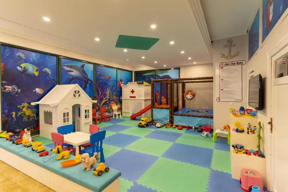 Her yaştan misafirimizin tatilden mutlu ayrılması için büyük özen gösteriyoruz. Tesisin açık havuzunda çocuk misafirlere ayrılmış özel bir alanımız bulunuyor. Minik misafirlerimiz için mini çocuk bahçesi de tesisimizde yer alıyor. Dileyen misafirler için ihtiyaç halinde bebek yatağı da temin ediliyor. Çocuk kulübünde görevli yoktur.