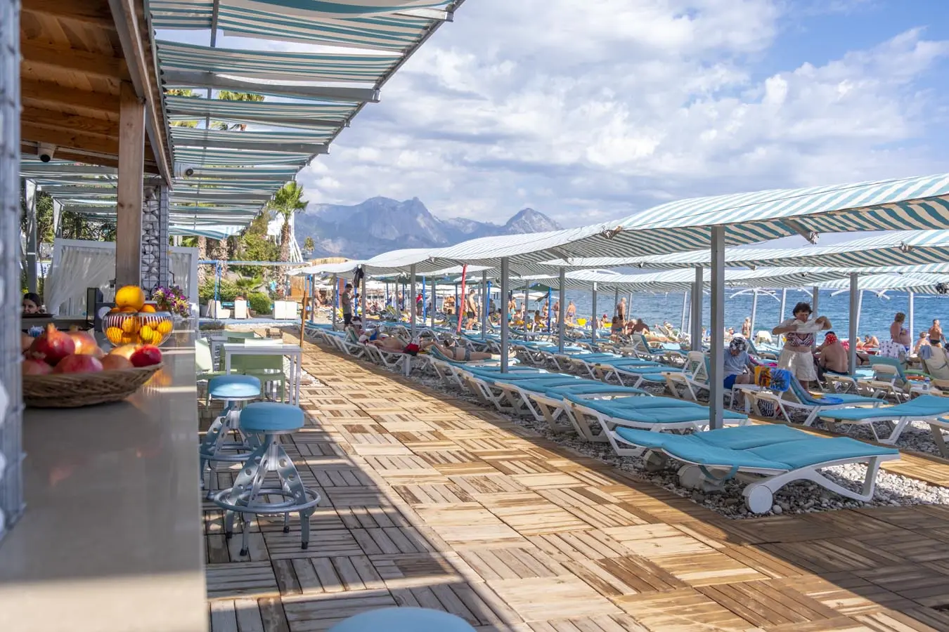 Tesisimize ait bu özel plajda servis edilen her içecek ve yiyecek ücrete tabidir. 08:00 ile 18:00 saatleri arasında hizmet vermektedir.